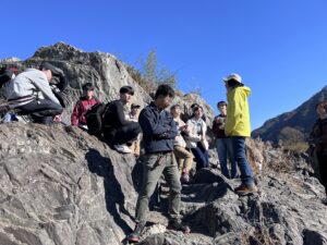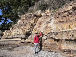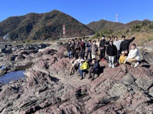 本分野の増田教授(環境学・生態学),京川准教授(地盤工学),福井助教(防災工学・海岸工学)が担当する地球科学実験の講義の一環で地質調査の巡見に行ってきました.愛知県西尾市の佐久島では堆積岩層や断層,岐阜県坂祝ではチャート層の付加体やP/T境界( ペルム紀Permianと三畳紀Triassic)を観察しました.